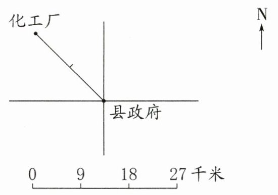 1. 如图所示为以某县县政府为中心的平面图,请根据图中信息解决下面的问题。