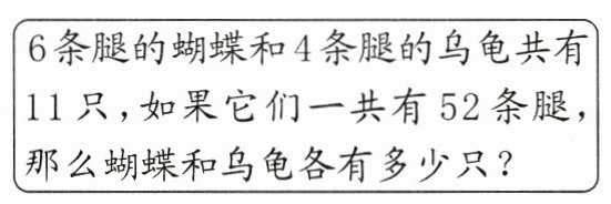 6x + 4(11 - x)=52 x = 4 乌龟:11 - 4 = 7(只)