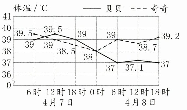 (2) 4 月 7 日 18 时,奇奇的体温是(
