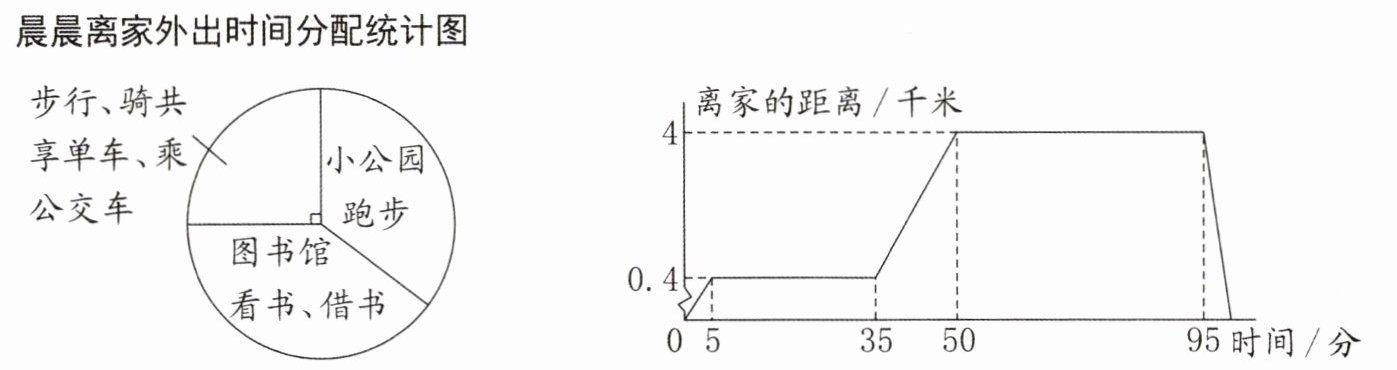 (1)晨晨在小公园跑步和图书馆看书、借书的时间占离家总时间的(