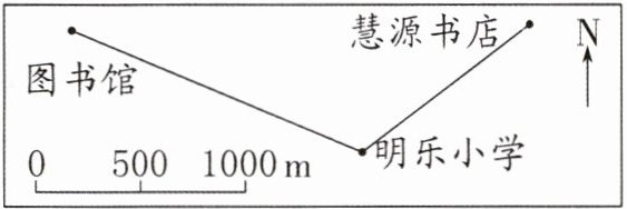 (1)明乐小学到慧源书店和图书馆的图上距离分别是(