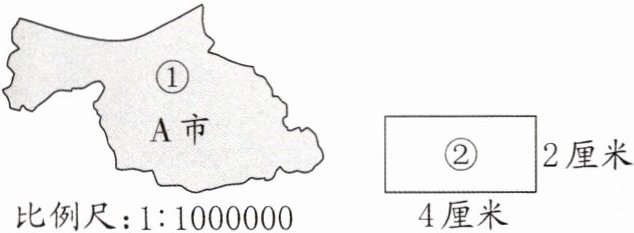 3. 在亚克力板材做成的地图上锯下A市的区域(如图①),称得质量约是12.3克。再在同一块亚克力板(材质相同、厚度相同)上锯下一块4厘米×2厘米的材料(如图②),称得质量约是10克。A市的实际面积大约是(