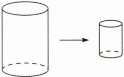 5. 新素养 几何直观 如图,将一个圆柱的底面半径和高都缩小为原来的$\frac{1}{2}$,缩小后与缩小前圆柱的侧面积之比是(