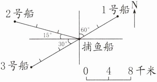4. 新素养 几何直观 一艘捕鱼船在海上作业时发生故障,附近三艘船接到求救信号后准备同时出发进行救援。若2号船和3号船的速度都是40千米/时,1号船的速度是30千米/时,则下面描述正确的是(