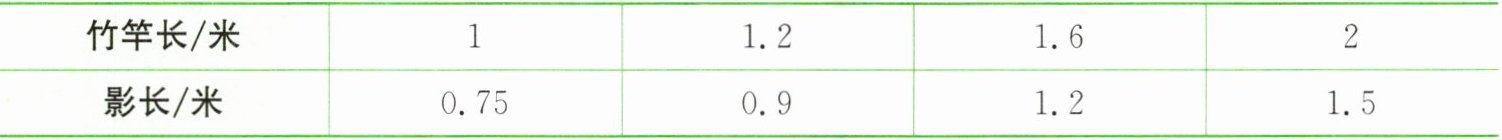 )的变化而变化。(2)表中竹竿长和影长这两种量相对应的两个数的比的比值是(