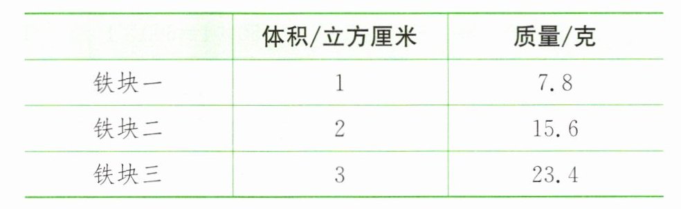 3. 数学社团的同学们用铁块做实验,分别测量出用同一种材料制作的三块铁块的质量和体积如右上表。