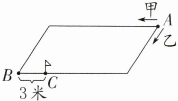 3. 如图,火车轨道的形状是平行四边形,甲、乙两列玩具火车同时从点 A 分别向不同的方向出发,40 秒后在点 C 相遇。已知甲火车与乙火车的速度比是 8:5,则甲火车每秒行驶多少米?