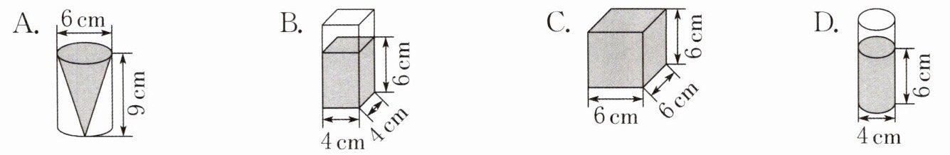 容积$V_{\mathrm{正方体}}=6×6×6=216\,\mathrm{cm}^3$。