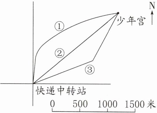 (2)从快递中转站到少年宫有三条路(如图),走第(