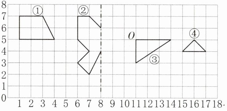 1. (1)把图①向下平移4格,画出平移后的图形。