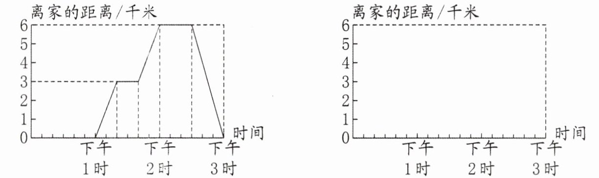 1. 新趋势 图表信息 李伯伯去离家6千米的图书馆看书,去时和回家时都骑共享单车。整个过程绘制成下面左图中的折线统计图。