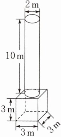 2. 公园里有 12 根生肖石柱,每根石柱都是由一个圆柱和一个正方体组成的(如图),且每根石柱的表面做了封蜡保护。若每平方米用 0.2 升蜡,则一共用了多少升蜡? (不包括底面)