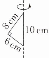 答案:4.C 解析:将所求立体图形的体积转化为两个圆锥的体积和,两个圆锥的底面半径均是6×8÷2×2÷10=4.8(cm),高之和是10cm,则得到的立体图形的体积是$π×4.8^2×10×\frac{1}{3}=76.8π(cm^3)。$