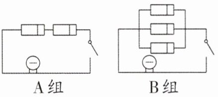 1. 新情境 学科融合 科学课上,王老师给同学们准备了 A 组、B 组两组电路实验材料(如图,$□$ 表示电池),一共有 $15$ 套,用了 $38$ 节电池。A 组实验材料有(