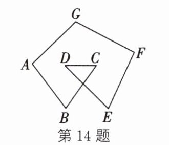 14. 如图,$\angle A+\angle B+\angle C+\angle D+\angle E+\angle F+\angle G$的度数是