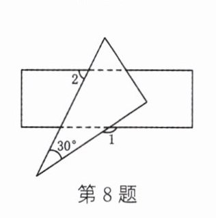 8. 将一块含 $ 30^{\circ} $ 角的三角尺和直尺按如图所示的方式放置. 若 $ \angle 1 = 146^{\circ}33' $,则 $ \angle 2 $ 的度数为