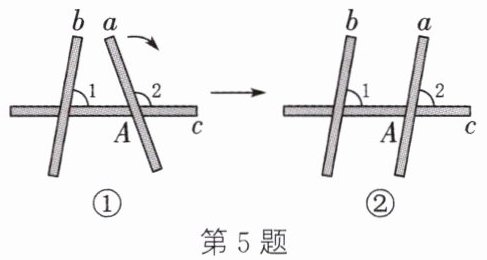 5. (2025·甘肃)如图①,有三根木条a,b,c,∠1=80°,∠2=110°,固定木条b,c,将木条a绕点A顺时针转动至如图②所示的位置,使木条a与木条b平行,则可将木条a旋转(