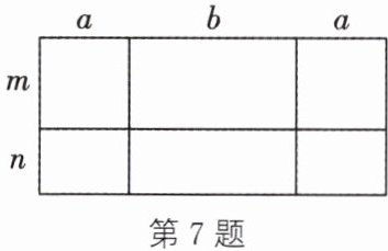 7. 甲、乙、丙、丁四名同学给出了下列四个不同的多项式来表示如图所示的长方形的面积:①$(2a + b)(m + n)$;②$a(m + n) + b(m + n)$;③$m(2a + b) + n(2a + b)$;④$2am + 2an + bm + bn$.其中,正确的有(