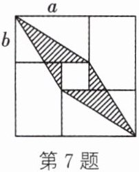 7. 将四张长为 $ a $、宽为 $ b $ 的长方形纸片按如图所示的方式拼成一个边长为 $ a + b $ 的正方形,则图中阴影部分的面积为