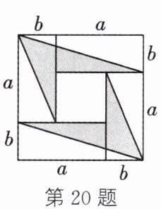 20. 将$4$张长为$a$、宽为$b(a > b)$的长方形纸片按如图所示的方式拼成一个边长为$a + b$的正方形,图中空白部分的面积为$S_{1}$,涂色部分的面积为$S_{2}$。若$S_{1}=2S_{2}$,则$a$,$b$满足(