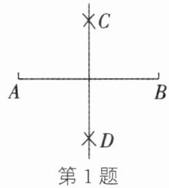 1. 如图,线段$AB = 6$,利用尺规作线段$AB$的垂直平分线,步骤如下:① 分别以点$A$,$B$为圆心,$b$为半径作弧,两弧相交于点$C$,$D$;② 作直线$CD$.直线$CD$就是线段$AB$的垂直平分线.由此可知,$b$的值可能是(