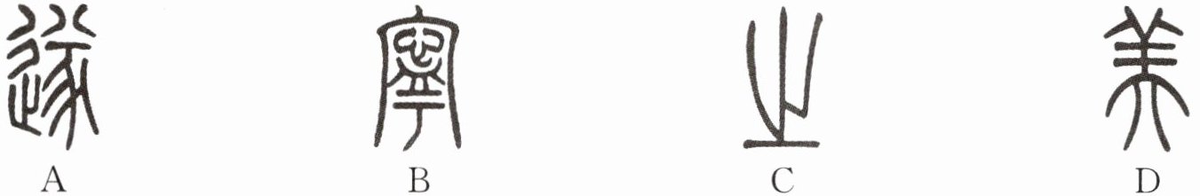 1. (2025·遂宁)汉字作为中华优秀传统文化的根脉和重要载体,在发展过程中演变出多种字体,给人以美的享受. 下列是“遂宁之美”四个字的篆书,能看作是轴对称图形的为(