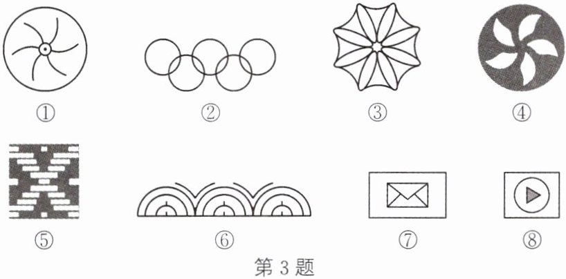 3. ③ 8 ②⑥⑦⑧ 解析:如图,对称轴条数最多的是③,共有8条对称轴;只有1条对称轴的是②⑥⑦⑧.