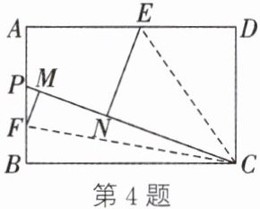 4. 如图,将一张长方形纸片 $ABCD$ 的两边 $CB$,$CD$ 折叠到一条直线 $CP$ 上,折痕分别为 $CF$ 和 $CE$,则 $\angle ECF$ 的度数为