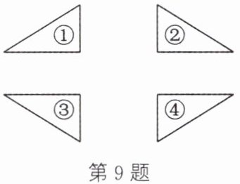 9. 如图,三角形④与哪些三角形成轴对称?整个图形是轴对称图形吗?如果是,那么它共有几条对称轴?请把它们画出来.