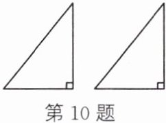 10. 如图,现有两张大小、形状完全一样的直角三角形纸片,将它们的一组对应边重合在一起能组成轴对称图形,请画出所有组成的轴对称图形及其对称轴(三角形不重叠).