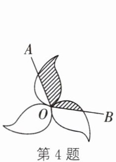 4. 如图所示的图案由三个叶片组成,绕点O旋转120°后可以和自身重合. 若每个叶片的面积为4 cm²,∠AOB的度数为120°,则图中阴影部分的面积为