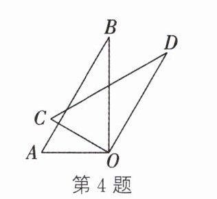 4. 如图,将一块直角三角尺AOB绕直角顶点O按顺时针方向旋转α(0°<α<180°)后得到△COD.若∠AOD=120°,则旋转角α=