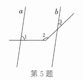 5. 如图,∠3 = 38°,直线 b 平移后得到直线 a,则∠1 + ∠2 =