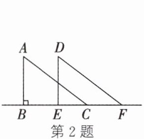 2. 如图,△ABC 是直角三角形,∠ABC = 90°,将其沿直角边 BC 所在的直线向右平移得到△DEF.下列结论中,不一定成立的是(