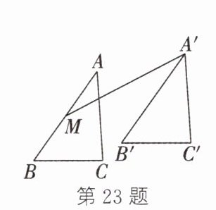 23. 如图,在△ABC 中,AB = 8,将△ABC 平移 6 个单位长度得到△A'B'C',M 是 AB 的中点,则 MA'长的最大值为
