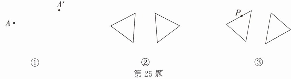 25. (1) 如图①,直线 l 即为所求 (2) 如图②,直线 m 即为所求 (3) 如图③,点 P′即为所求