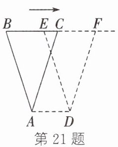 21. 如图,在△ABC 中,BC = 8 cm。将△ABC 沿 BC 所在直线向右平移得到△DEF。若要使 AD = 3CE 成立,则平移的距离是