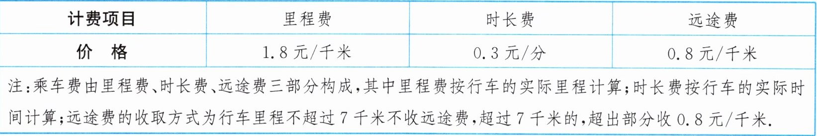 3. 快车是一种便捷的出行工具,计价规则如下表: