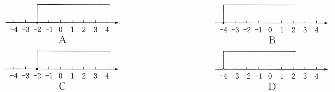 6. 解不等式$\frac{1 + 4x}{3} > x - 1$,下列在数轴上表示的解集正确的是(