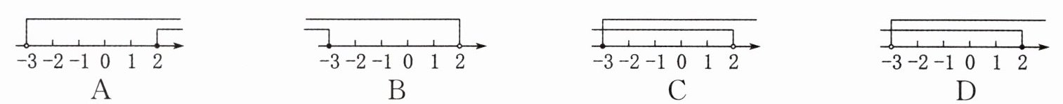 不等式组的解集为$-3 \leq x < 2$,在数轴上表示为选项C。