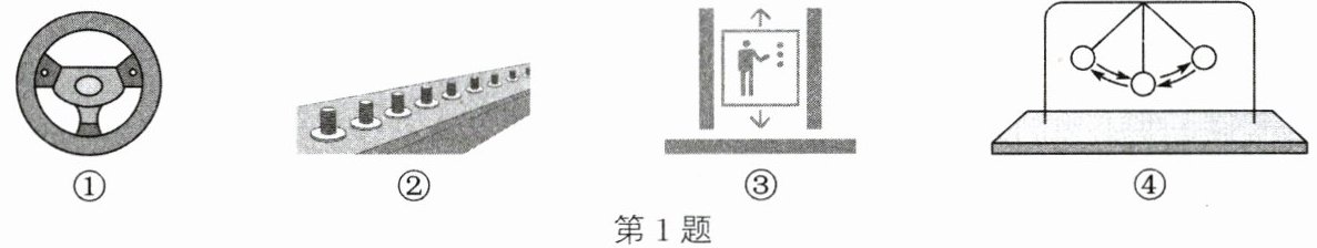 1. 如图,有下列现象:① 汽车方向盘转动;② 物体随传送带水平移动;③ 电梯升降运动;④ 钟摆运动. 其中,属于平移的有 (
