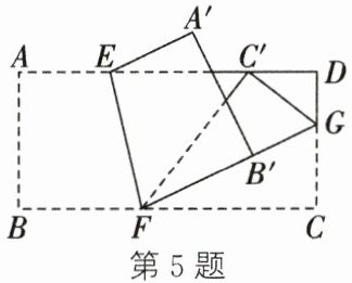 5. 将一张长方形纸片 $ ABCD $ 按如图所示的方式进行折叠,$ EF $,$ FG $ 为折痕,点 $ A $,$ B $,$ C $ 的对应点分别为 $ A' $,$ B' $,$ C' $,点 $ B' $ 在 $ FG $ 上,点 $ C' $ 在 $ AD $ 上. 若 $ \angle AEF = 103^{\circ} $,则 $ \angle FGC' $ 的度数是 (