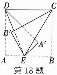 18. 如图,点E在正方形纸片ABCD的AB边上,连接CE,DE,将纸片分别沿直线DE,CE翻折,点A,B的对应点A',B'均在∠CED外部。若∠DEB' + ∠A'EC = $\frac{1}{2}$∠CED,设∠CED = α°,则α的值是