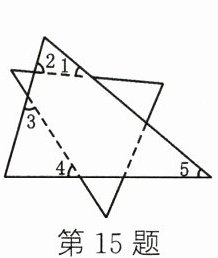 15. 将两张三角形纸片按如图所示的方式摆放,量得∠1 + ∠2 + ∠3 + ∠4 = 220°,则∠5的度数为