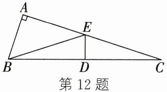12. 如图,在直角三角形ABC中,∠A = 90°,点C与点B关于DE成轴对称,连接BE,∠ABE = 3∠EBD,则∠C的度数是