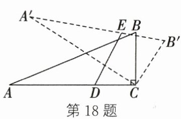 18. 如图,在 $\triangle ABC$ 中,$\angle ACB = 90^{\circ}$,$AB = 13$,$AC = 12$,$BC = 5$,将 $\triangle ABC$ 绕点 $C$ 顺时针旋转,点 $A$,$B$ 的对应点分别是 $A'$,$B'$,$D$ 为线段 $AC$ 上一点,且 $CD = 4$,$E$ 为线段 $A'B'$ 上一动点。在旋转过程中,线段 $ED$ 长的取值范围是