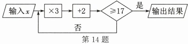 14. 如图所示为一个运算程序,若需要经过两次运算才能输出结果,则 $x$ 的取值范围是