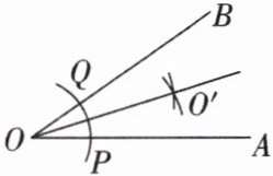 长为半径作弧,与OA,OB分别交于点P,Q;(2)分别以点P,Q为圆心,取大于 $\frac{1}{2}PQ$