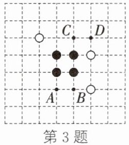 3. 围棋起源于我国,古代称为“弈”。如图所示为两名同学的部分对弈图,轮到白方落子,观察棋盘,当白方落子在A,B,C,D中的