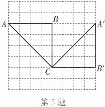 5. (教材P69例1变式)如图,在正方形网格中,△ABC的顶点均在格点上,且△A′B′C是由△ABC旋转得到的,请指出上述旋转过程中的旋转中心,旋转的方向与旋转的角度(旋转的角度小于180°)。